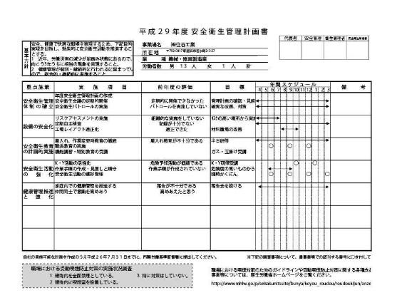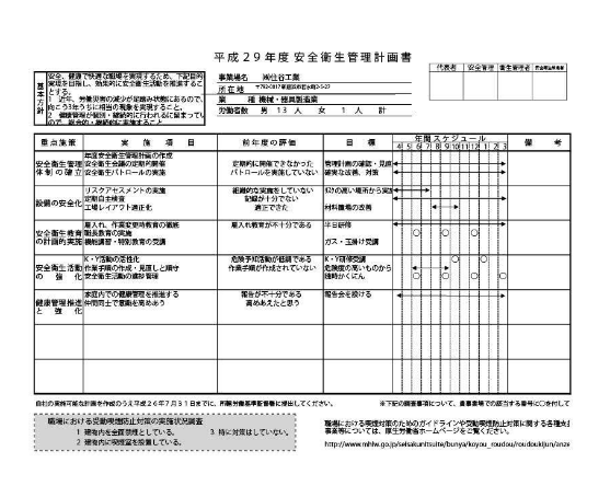 | 技術者・資格者 | 足場組立作業主任者:1名 職長教育技能教育修了者:3名 クレーン運転士:8名 玉掛け資格者:10名 フォークリフト運転技能士:9名 高所作業車免許資格者:8名 アーク溶接技術者:10名 ガス溶接技術者:9名 砥石取替免許資格者:9名 特定粉塵作業者:9名 酸欠作業者:2名 プレス作業技術者:3名 |